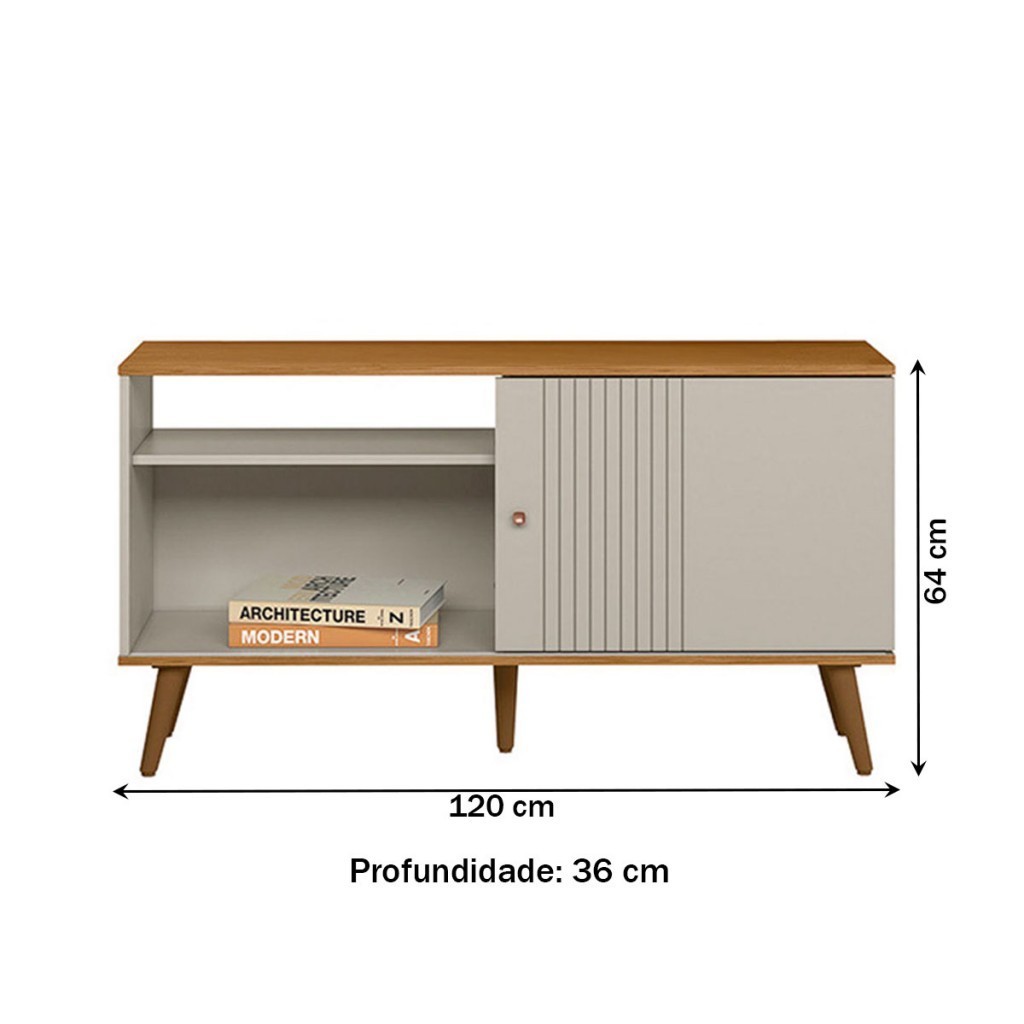 Rack para TV Até 50 Polegadas Rubi 1 Porta 1 Prateleira Nature/Off White - Linea Brasil