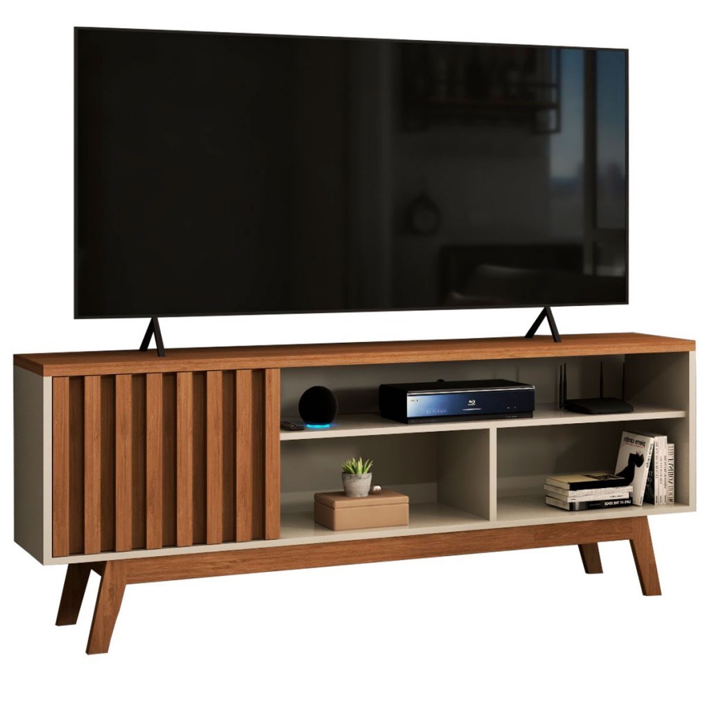 Rack para TV Até 55 Polegadas Ripado Hungria Retrô 1 Porta 1 Prateleira Off White/Freijó - Panorama Móveis