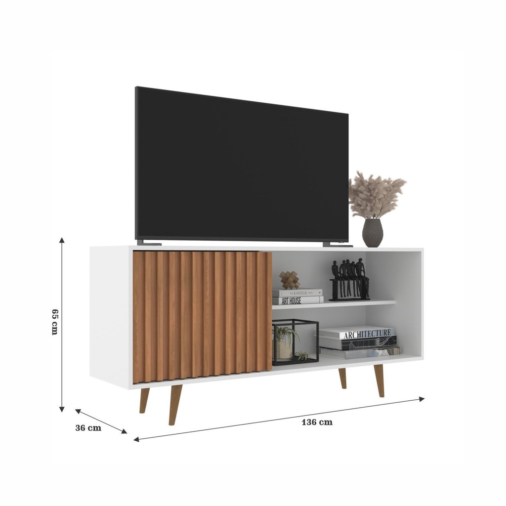 Rack para Tv até 55 Polegadas Ripado San Diego Freijó/Branco