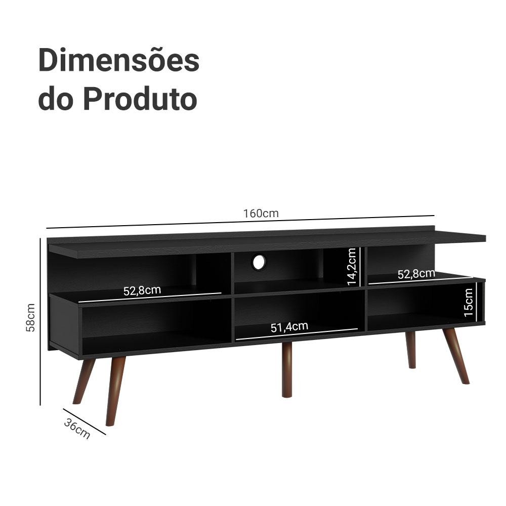 Rack para TV até 65 Polegadas com Pés Retro Preto Londres Madesa