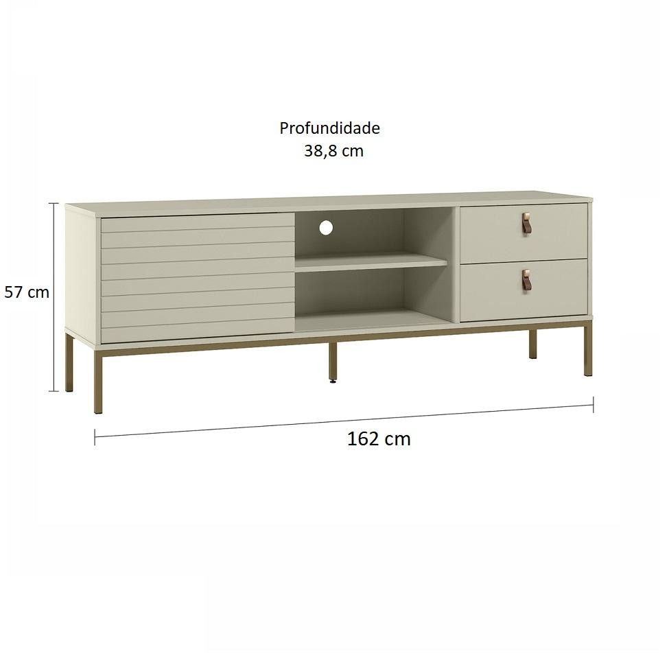 Que tal o Rack Dior?A melhor forma de deixar a sua sala de estar bem equipada e pronta para a rotina é apostando no Rack Dior! Dono de uma estrutura bastante completa para ajudar na organização de eletrônicos ou enfeites, ele apoia TVs de até 65 polegadas no tampo, deixando o aparelho em uma altura ideal para curtir um filminho ou a sua série preferida - você também pode combiná-lo com um painel para deixar o cômodo ainda mais perfeito. O design industrial ganha o reforço da cor harmônica e charmosa, que cai bem com a décor de um lar aconchegante, e, de quebra, o acabamento ripado agrega um toque de elegância ao móvel, reforçando a beleza do lar-style. Cor: OFF WHITE Garantia em Meses: 3 Cores do Produto: Off White Instruções/Cuidados: Limpar com pano úmido. Não aplica lustra móveis Conteúdo da Embalagem: 1 Rack - Entregue em: 1 Volume Modelo: Dior Número de Volumes: 1 Material: O Rack Dior possui estrutura em MDP e MDF 15mm, porta de correr com trilho metálico, gavetas com corrediças telescópicas e acabamento acetinado Material para Filtro: MDF/MDP Descrição do Tamanho: Altura: 57 cm | Largura: 162 cm | Profundidade: 39 cm Altura do Produto (cm): 57 Largura do Produto (cm): 162 Comprimento do Produto (cm): 39 Peso do Produto (Kg): 30 Produto precisa de Montagem?: Sim, sugerimos a contratação do nosso serviço de montagem (para os CEPs em que o serviço está disponível) ou de algum profissional experiente de sua preferência Número de portas: 1 Número de gavetas: 2 Tipo de pé: Fixo Número de Prateleiras: 1 Ideal para TVs de até (polegadas): 65 Acompanha suporte para TV: Não Material da dobradiça/trilho da porta: Metal Material da estrutura: MDP e MDF Material do puxador: Revestimento Sintético Necessita fixação na parede: Não Tipo da Corrediça da gaveta: Telescópica Tipo de Porta: Correr Material dos pés: Metal PROFUNDIDADE x LARGURA x ALTURA: 39 x 162 x 57 Fornecedor: OLIVAR MOVEIS LTDA Formato do móvel: Rack Baterias são necessárias?: Não Componentes incluídos: Não Is Fragile: Não Número da peça: Não Certificação de teste externa: Não Produto: Rack Tamanho: Não se aplica Inclui manual de montagem: Sim