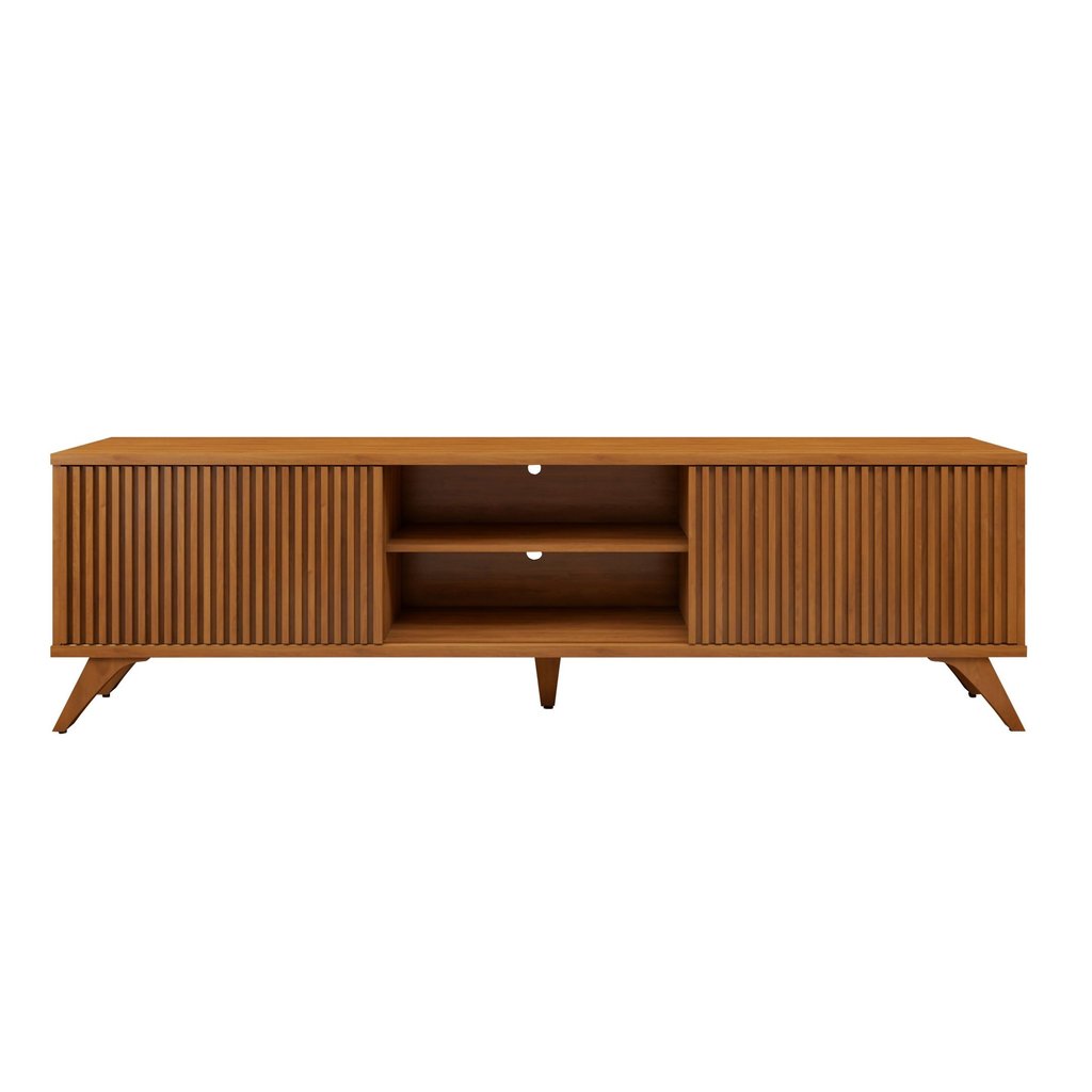 Rack para TV até 75 Polegadas 100% MDF Ripado 2 Portas de Correr Pés em Madeira Maciça 218cm Gaia Naturalle