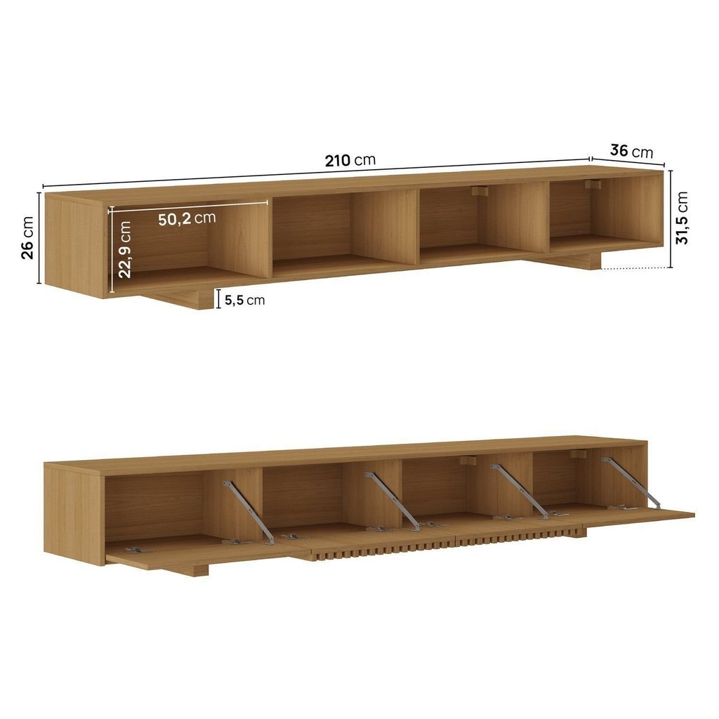 O Rack Aruá traz a essência do estilo japandi, inspirado na simplicidade oriental e no equilíbrio entre forma e função. Com design baixo, portas lisas e ripadas, acabamento em Jatobá e ferragens premium, une sofisticação e praticidade. Disponível em 180 e 220 cm, pode ser suspenso, apoiado no piso ou configurado com aparador extensível. Peso (kg): 32 Garantia: 24 Meses Altura (cm): 31.5 Acabamento: Finish Foil Largura (cm): 210 Possui Pés: Sim Possui Vidro: Não Possui Portas: Sim Tipo de Porta: Basculante Altura dos Pés: 5.5 Possui Gavetas: Não Possui Rodízio: Não Suporta Até (kg): 32 Escala de Brilho: Semi-Fosco Material dos Pés: MDP Textura da Porta: Ripada Material da Porta: MDP Origem do Produto: Nacional Possui Iluminação: Não Acabamento dos Pés: Finish Foil Ambiente Principal: Sala de Estar Fabricação Própria: Sim Material Principal: MDP Possui Passa Cabos: Não Possui Prateleiras: Não Acabamento da Porta: Finish Foil Sapatas Niveladoras: Não Quantidade de Espelhos: Não Tipo de Puxador da Porta: Embutido Escala de Brilho da Porta: Semi-Fosco Ideal para TVs até (Polegadas): 75 Material do Puxador da Porta: MDP Tipo de Dobradiça/Corrediça da Porta: Metálica Marca: CabeCasa MadeiraMadeira Cor do Produto: Jatobá Itens Inclusos: 1 Rack, Manual de Montagem e Kit Ferragens Cor Predominante: Marrom Linha ou Coleção: Aruá Estilo do Pé: Moderno Modelo de Porta: Porta Ripada Quantidade de Portas: 4 Portas