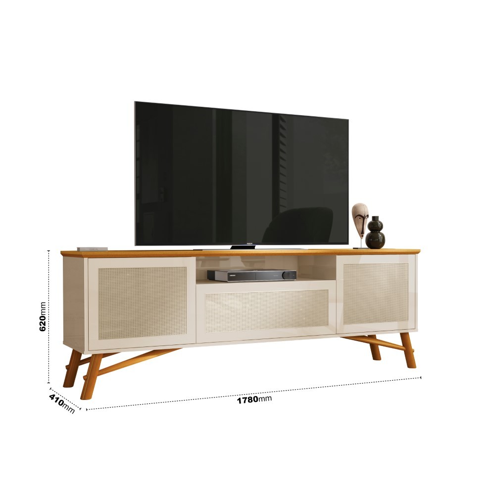 Rack para TV até 75 Polegadas 3 Portas com Pés em Madeira Maciça Rattan 178cm