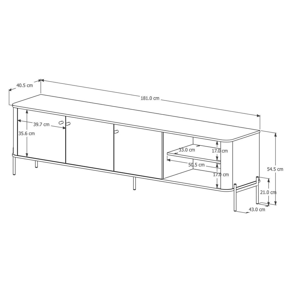 A bancada tucupí tem os cantos arredondados exclusivos da linha, base e tampo em MDF de 15mm, porta em MDF de 15mm com dobradiças, além dos pés e puxadores em metal com design exclusivo. Medidas: L 183cm x A 54,5cm x P 42cm. Estilo: Moderno Peso (kg): 31.2 Garantia: 06 Meses Altura (cm): 54.5 Acabamento: Pintura UV Largura (cm): 181 Possui Pés: Sim Possui Adega: Não Possui Vidro: Não Possui Nichos: 4 Tipo de Porta: Bater Possui Gavetas: Não Possui Rodízio: Não Suporta Até (kg): 25 Profundidade (cm): 40.5 Escala de Brilho: Semi-Brilho Material dos Pés: Metal Material da Porta: MDF Origem do Produto: Nacional Possui Iluminação: Não Acabamento dos Pés: Pintura Ambiente Principal: Sala de Estar Espessura do Tampo (mm): 15 Material Principal: MDF Possui Passa Cabos: Sim Possui Prateleiras: Sim Acabamento da Porta: Pintura UV Sapatas Niveladoras: Não Material da Prateleira: MDF Quantidade de Espelhos: Não Acabamento da Prateleira: Pintura UV Tipo de Puxador da Porta: Externo Escala de Brilho da Porta: Semi-Brilho Peso Máximo por Prateleira: 5 Ideal para TVs até (Polegadas): 75 Material do Puxador da Porta: Metal Escala de Brilho da Prateleira: Semi-Brilho Tipo de Dobradiça/Corrediça da Porta: Metálica Marca: JB Bechara Cor Flex: Não Cor Interna: Off White Cor: Off White/Nature/Preto Cor do Produto: Off White/Nature/Preto Itens Inclusos: 1 Rack, Manual de Montagem e Kit Ferragens Cor Predominante: Bege Linha ou Coleção: Linha 2025 Cor da Caixa: Off White Cor da Porta: Off White Estilo do Pé: Industrial Modelo de Porta: Porta Lisa Quantidade de Prateleiras: 02 Prateleiras Quantidade de Portas: 1 Porta