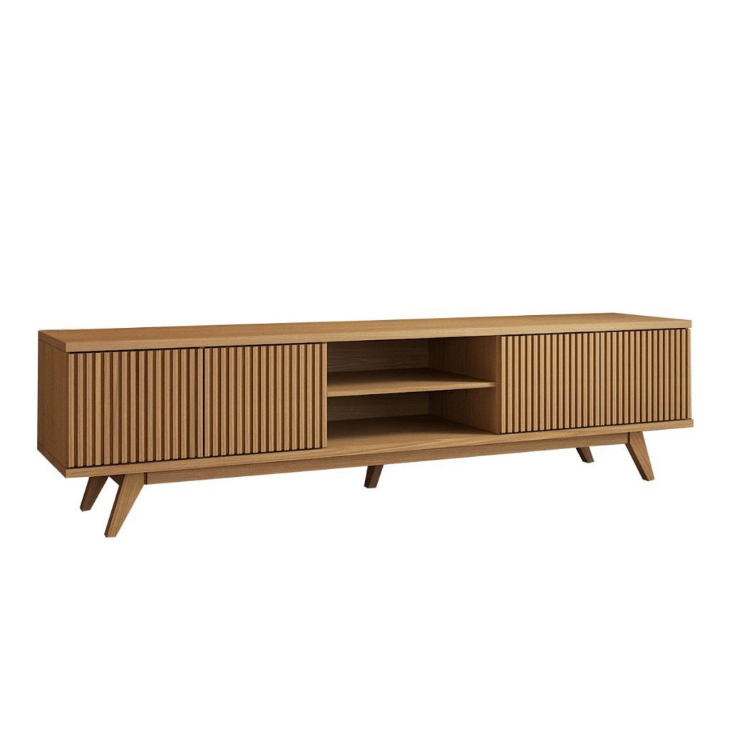 Rack para TV Até 75 Polegadas Silver 4 Portas 1 Prateleira Ripado Cinamomo - Panorama Móveis