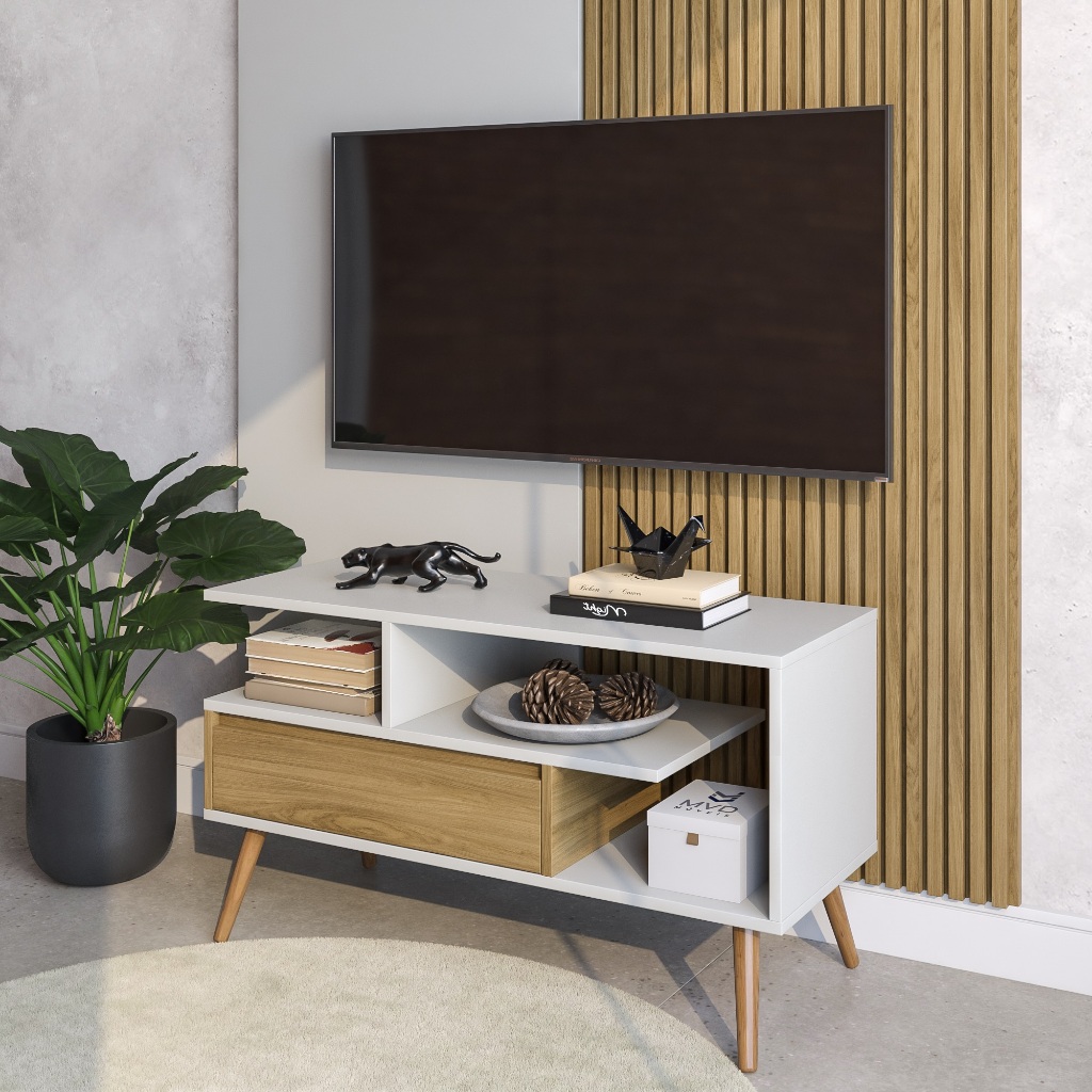 Rack Para TV Com Porta Estante home theater Aparador Com Pés Palito Retro Cores MVD Móveis