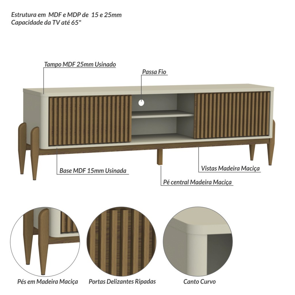 | Rack Ripado Sereno p/ TV até 65” 180cm com 2 Portas de Correr e Pés... este produto | R$ 729,99 | 30% | 4.0/5 | 1 |