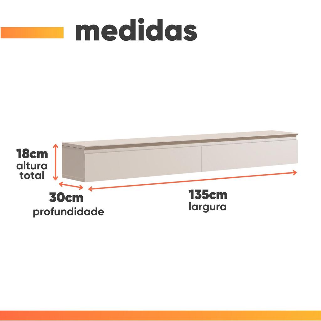 Rack Suspenso Para Painel ou TV até 55 Polegadas 2 Gavetas 1,35m Aspen Off White EDN