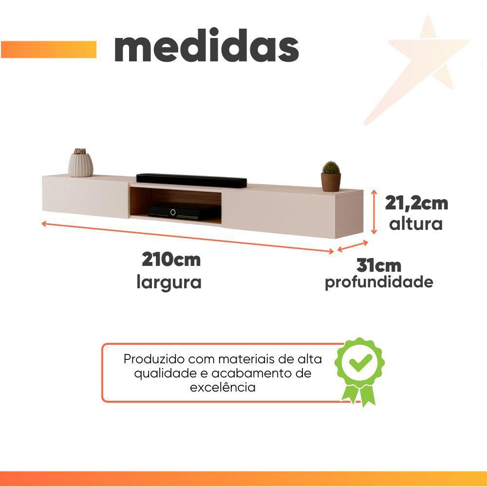 Rack Suspenso para Painel ou TV até 75 Polegadas 2,10m 2 Portas com Nicho Montreal Off White