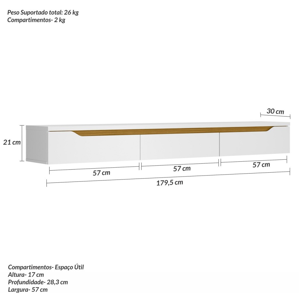 Rack Suspenso Uno 180cm p/ TV até 65" 3 Portas Design Moderno e Funcional p/ Sala de Estar Quarto