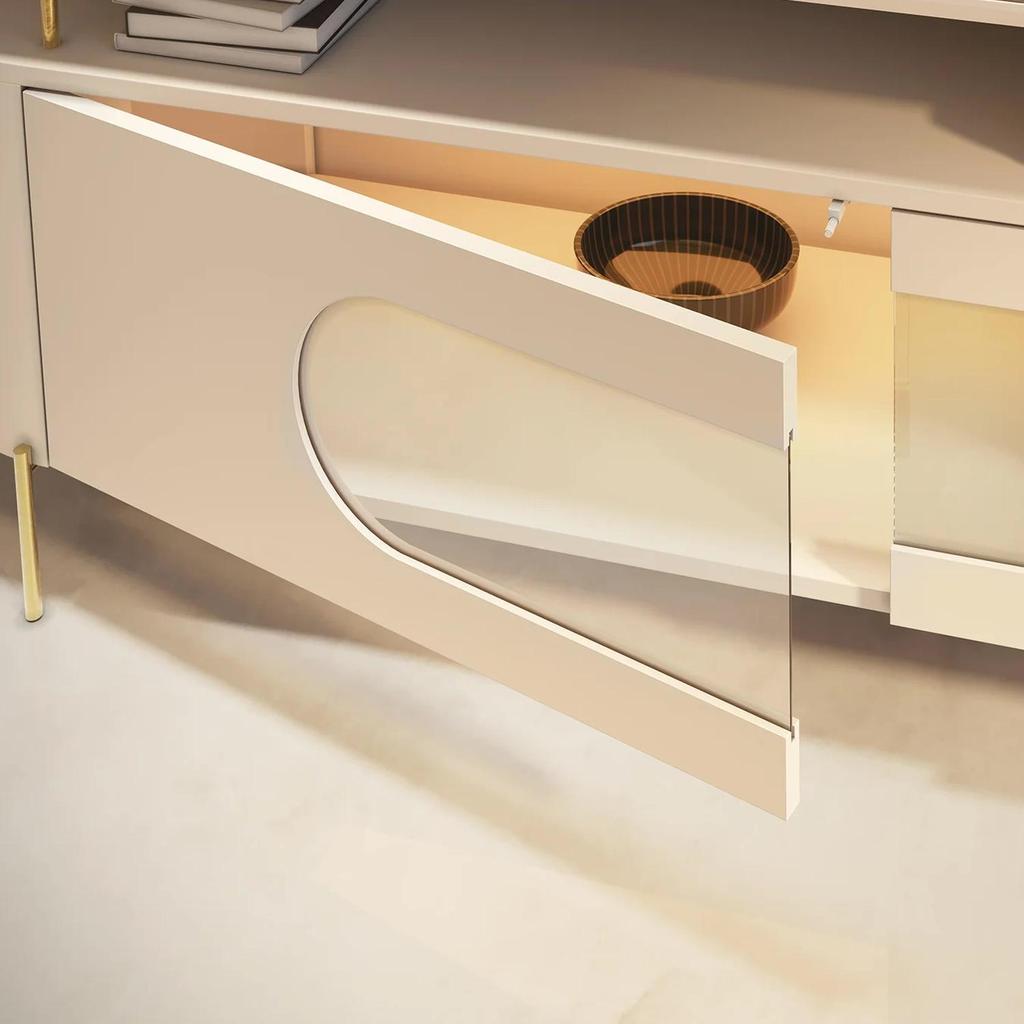 Rack TV 85 Pol 220cm 2 Portas Com LED Ária Off/Cinamomo - HB Móveis Com estilo contemporâneo e acabamento sofisticado, essa peça transforma a Sala De Estar com beleza e funcionalidade em cada detalhe. Projetada para suportar televisores de até 85 polegadas, a Bancada Para TV conta com cantos arredondados e portas com vidro embutido em caneleta, conferindo um visual moderno e elegante. O sistema fecho toque proporciona praticidade no dia a dia, enquanto a iluminação em LED e a prateleira de vidro de 6mm valorizam objetos decorativos com charme e leveza. Produzida em 100% MDF, possui tampo com borda chanfrada de 18mm e pés tubulares dourado envelhecido, unindo resistência, estilo e funcionalidade em uma única peça. ESPECIFICAÇÕES Dimensões do Produto Largura: 219 cm. Altura: 58 cm. Profundidade: 40 cm. Peso: 44,3 Kg. Características do Produto Material da Estrutura: MDF 15mm/18mm. Peso Suportado: 60kg Distribuídos. Acabamento: Pintura UV. Escala de Brilho: Brilhante/Fosco. Suporta TV de até: 85 Polegadas. Possui Prateleiras: Sim. Quantidade de Prateleiras: 1 Prateleira. Possui Portas: Sim. Quantidade de Portas: 2 Portas. Material da Porta: MDF/Vidro. Tipo de Porta: Convencional. Tipo de Dobradiças: Metálicas. Possui Gavetas: Não. Possui Puxador: Não. Possui Nicho: Sim. Quantidade de Nichos: 2 Nichos. Possui Espelho: Não. Possui LED: Sim. Possui Pés: Sim. Material dos Pés: Aço. Diferenciais: - Design orgânico. - Tampo com bordas chanfradas. - Pés de aço na cor dourada. Sistema de Montagem: Cavilhas/Parafusos/Minifix. Manual de Montagem: Sim. Complexidade da Montagem: Alta. Volumes: 1 Volume. Conteúdo da Embalagem: 1 Rack Bancada. Garantia do Fabricante: 90 dias contra defeito de fabricação. Montagem: Recomendamos que seja feita por um profissional. Recomendação de Limpeza: Utilize pano levemente úmido.