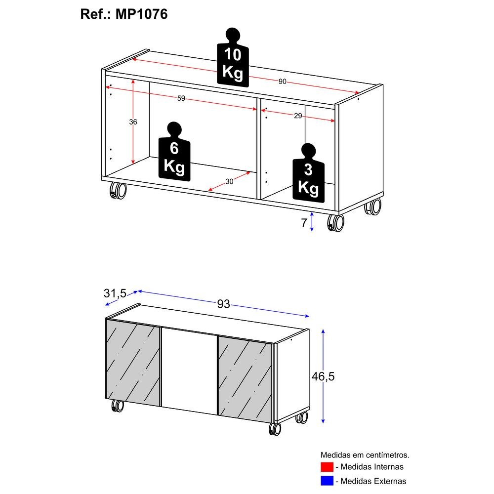 O Rack TV até 32 Polegadas 3 Portas com Rodízios e Espelhos Multimóveis MP1076 é o móvel perfeito para completar a decoração da sua sala de estar com estilo. Fabricado em MDP (15mm) com acabamento acetinado (cerca de 20% de brilho), garante durabilidade e resistência. Com 3 portas, você terá amplo espaço interno para guardar objetos e manter sua sala sempre organizada. Suporta TV de até 32 polegadas (até 10kg). Seu design clean proporciona um visual moderno e sofisticado ao ambiente. Além disso, o móvel conta com rodízios que facilitam a sua movimentação e a limpeza do ambiente. Os espelhos são de vidro, evitando que a imagem fique distorcida, e lapidados (passam por um processo para que as bordas não fiquem cortantes), garantindo maior segurança e deixando o móvel mais requintado. Conteúdo da Embalagem: 1 (um) Rack com Espelho Manual de Montagem Kit Ferragem Dimensões do produto montado: Altura: 46,5 cm | Largura: 93 cm | Profundidade: 31,5 cm *Você pode consultar as medidas detalhadas na imagem técnica do produto. *Devido às variações de tamanho dos televisores no mercado, sugerimos que compare o tamanho da sua TV com o rack antes de efetuar a compra. *As cores do produto podem sofrer variações de tonalidade de acordo com as configurações do seu dispositivo. Imagem meramente ilustrativa. Decoração e Eletros não acompanham o produto. O produto será entregue desmontado e não disponibilizamos o serviço de montagem.