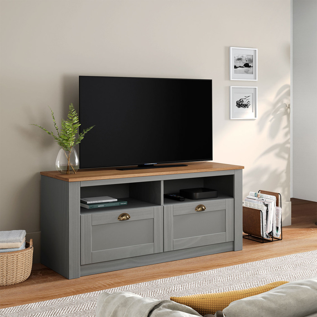Rack TV Bancada 43 Polegadas Madeira Maciça 2 Gavetas 2 Nichos Bolton