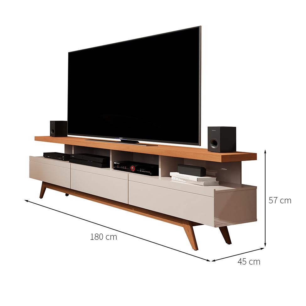Que tal o Rack Vivare?A organização ideal começa com o Rack Vivare e sua estrutura perfeita para facilitar o dia a dia. Além de apoiar a televisão no tampo espaçoso, ele também é o cantinho certo para acomodar os eletrônicos e enfeites importantes para o visual do ambiente - isso sem contar que ele mesmo já é uma grande adição para a décor do cômodo, já que tem cor clássica que ajuda a trazer charme e um toque elegante e bem versátil. Por ter bons compartimentos, você pode optar por usá-lo sozinho ou acompanhado de um painel para potencializar a funcionalidade. Assim fica fácil conquistar um lar-style completo e cheio de beleza, né? ;) Cor: OFF WHITE Garantia em Meses: 3 Cores do Produto: Off White Instruções/Cuidados: Limpar com pano seco Conteúdo da Embalagem: 1 Rack - Entregue em: 2 Volumes Modelo: Vivare Número de Volumes: 2 Material: O Rack Vivare possui estrutura em MDP 15mm, 3 gavetas com corrediças telescópicas, 4 pés fixos de madeira e acabamento semi brilhante. Material para Filtro: MDP Descrição do Tamanho: Altura: 57 cm | Largura: 180 cm | Profundidade: 45 cm Altura do Produto (cm): 57 Largura do Produto (cm): 180 Comprimento do Produto (cm): 45 Peso do Produto (Kg): 45.7 Produto precisa de Montagem?: Sim, sugerimos a contratação do nosso serviço de montagem (para os CEPs em que o serviço está disponível) ou de algum profissional experiente de sua preferência Número de portas: Sem portas Número de gavetas: 3 Tipo de pé: Fixo Ideal para TVs de até (polegadas): 72 Acompanha suporte para TV: Não Material da dobradiça/trilho da porta: Não se Aplica Material da estrutura: MDP Material do puxador: Não Possui Necessita fixação na parede: Não Possui espelho/vidro: Não Tipo da Corrediça da gaveta: Telescópica Tipo de Porta: Não possui Material dos pés: Madeira PROFUNDIDADE x LARGURA x ALTURA: 45 x 180 x 57 Fornecedor: Giga Moveis Industria de Moveis LTDA. Formato do móvel: Rack Baterias são necessárias?: Não Is Fragile: Não Componentes incluídos: Não Número da peça: Não Certificação de teste externa: Não Produto: Rack Tamanho: Não se aplica Inclui manual de montagem: Sim