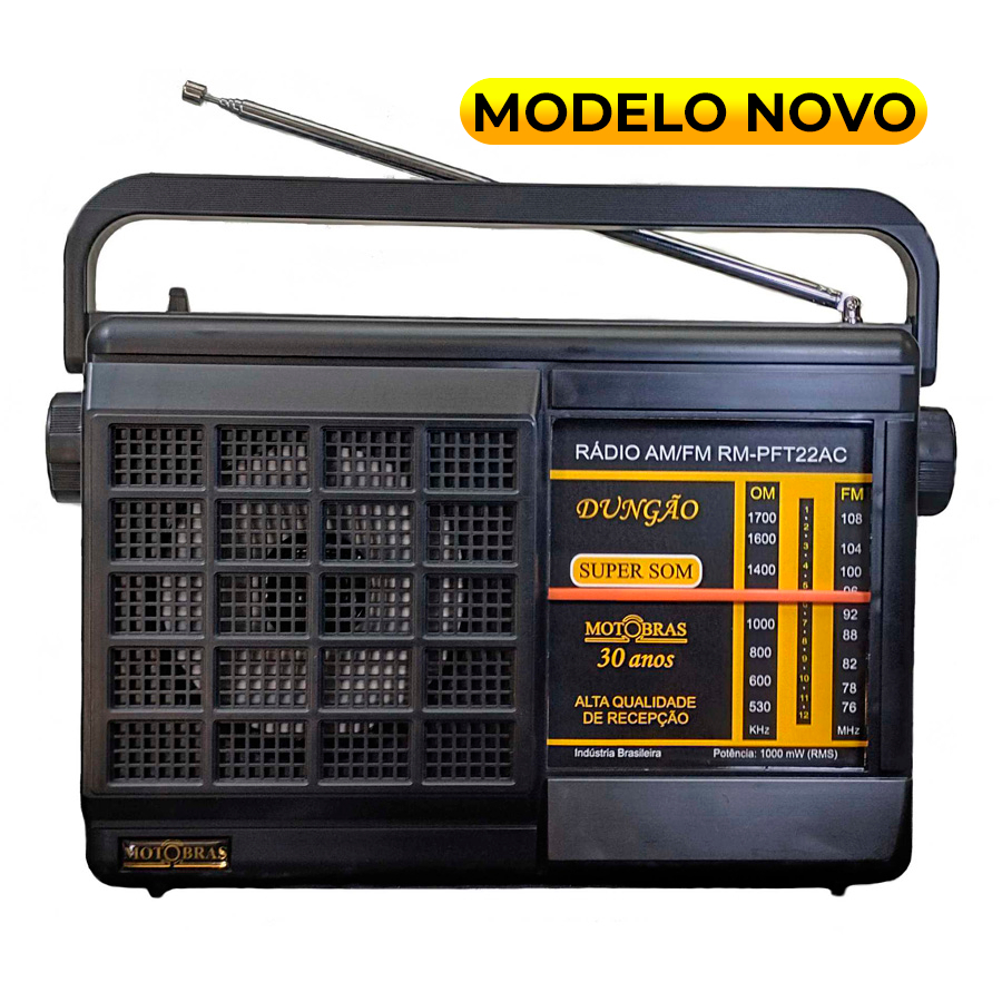 | Rádio 2 Faixas AM/FM Portátil Dungão 22AC- Motobras este produto | R$ 249,99 | — | 4.9/5 | 16 |