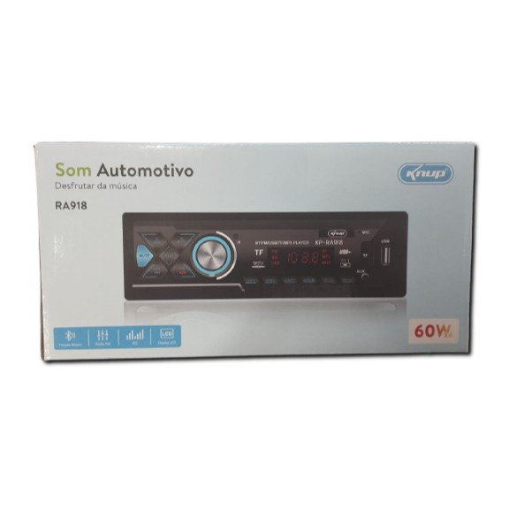 Leve a sua experiência musical para o próximo nível com o nosso incrível Sistema de Som Automotivo! Com conectividade Bluetooth, você pode facilmente sincronizar o seu dispositivo móvel para reproduzir suas músicas favoritas sem fios. Além disso, a porta USB e a entrada auxiliar proporcionam opções adicionais de conectividade para dispositivos diversos, garantindo que você nunca fique sem opções de entretenimento. Sintonize suas estações de rádio preferidas com o sintonizador AM/FM integrado e desfrute de uma qualidade sonora excepcional, transformando cada viagem em uma experiência musical envolvente. Características: - Conexão Bluetooth; - Atende chamadas através do sistema de som; - Microfone integrado; - Entradas USB e cartão Micro SD/MMC; - Suporta formato MP3; - Rádio FM; - Sintonizador eletrônico estéreo; - Alimentação: 12V; - Display LED; - Iluminação Backlight dos botões; - Potência da saída: 60W x 4; - Entrada auxiliar; - Função Relógio; Conteúdo: 1x Rádio KP-RA918 1x Controle 1x Kit de instalação 1x Manual de instruções