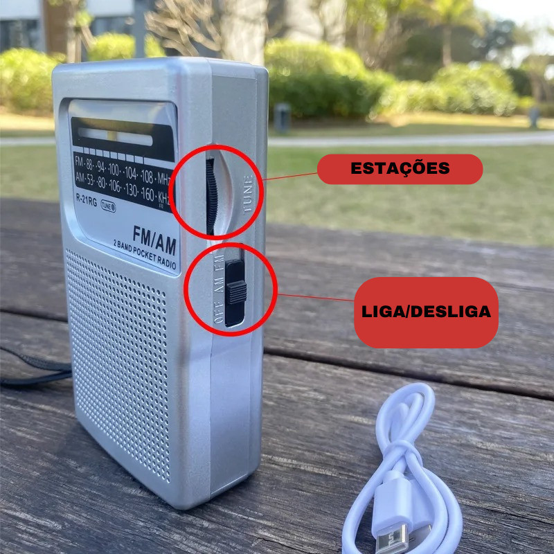 Mini Rádio De Bolso Portátil FM/AM 2 Bandas Retrô Marca: Altomex Rádio clássico que cabe no bolso, ele é recarregável via cabo TIPO-Ce também funciona com pilha AA Características: - FM/AM - 2 Bandas - Entrada P2 para fone de ouvido - Carregamento TIPO-C 5V (acompanha cabo) - Carregamento a pilha 2x AA (não inclusa) - Captador de frequência - Corrente macia de cordão de mão - Estilo Retrô - Antena retrátil 24,5cm Disponível nas cores: -Preto -Silver Medidas do Radio 12x07x03.Peso 130g Saida USB-C Input Voltage:5 Condition:New Quantity:1 Input Voltage:5 Condition:New