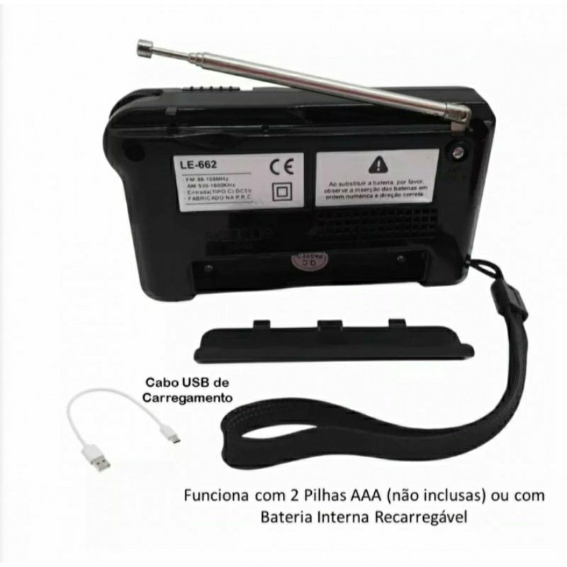 Mini Rádio De Bolso Portátil FM/AM 2 Bandas Retrô Marca: Altomex Rádio clássico que cabe no bolso, ele é recarregável via cabo TIPO-Ce também funciona com pilha AA Características: - FM/AM - 2 Bandas - Entrada P2 para fone de ouvido - Carregamento TIPO-C 5V (acompanha cabo) - Carregamento a pilha 2x AA (não inclusa) - Captador de frequência - Corrente macia de cordão de mão - Estilo Retrô - Antena retrátil de 9,5cm até 25 cm Disponível nas cores: -Preto -Prata Medidas da embalagem: L: 5,5 x C: 15,0 x A: 10,5cm Peso do Produto: 165g Input Voltage:5 Condition:New Quantity:1