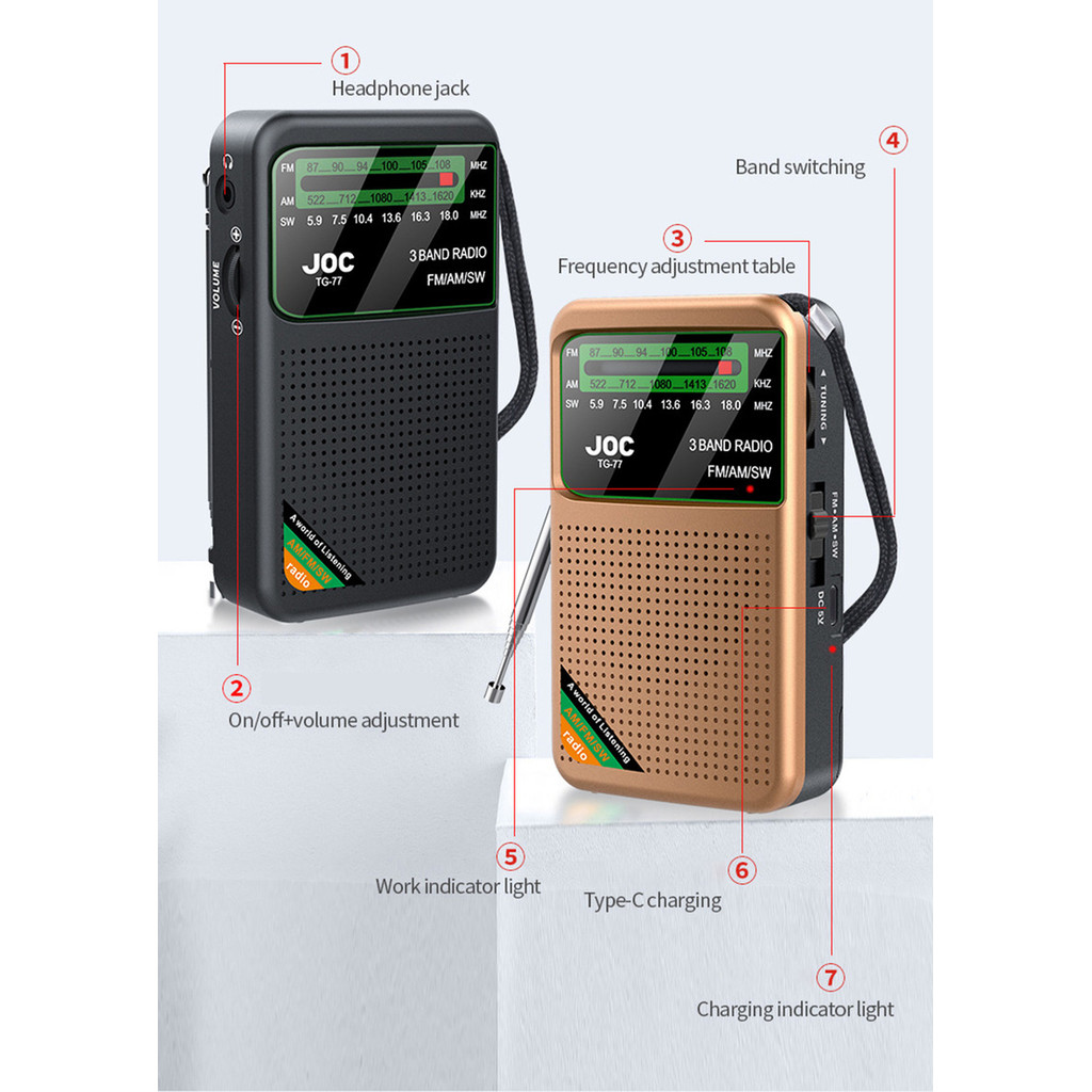 Pronta Entrega FM: 87,5-108 MHz MW: 522-1620 kHz 9K 520-1710 kHz 10K SW: 5,6-22 MHz O rádio meteorológico FM AM SW NOAA é extremamente portátil. Tamanho compacto de 125 x 74 x 30 mm, sem bateria. Você pode segurar o rádio de emergência com uma mão ou colocar este pequeno rádio meteorológico AM FM SW NOAA no seu bolso ou bolsa, ouvir seu rádio favorito e obter as últimas previsões meteorológicas a qualquer hora e em qualquer lugar. Aproveite suas transmissões favoritas e proteja sua vida. O rádio é um rádio de ondas curtas FM/AM de alta qualidade com frequências meteorológicas. O chip DSP melhora efetivamente a recepção de rádio, permitindo que você receba transmissões de todo o mundo. Rádio Meteorológico NOAA para Emergências: O rádio meteorológico recebe transmissões meteorológicas precisas de sete estações meteorológicas NOAA. Com este pequeno rádio portátil, você pode obter as últimas previsões meteorológicas locais, como tornados, furacões e tempestades, a qualquer hora e em qualquer lugar. Com este rádio de emergência, você pode se preparar para emergências com antecedência e proteger sua vida e a de sua família. Este rádio portátil de ondas curtas AM FM possui um alto-falante embutido potente que proporciona um som alto e claro. Com este rádio meteorológico de ondas curtas AM FM, você pode desfrutar de música de alta qualidade, vozes claras e transmissões meteorológicas em alto volume. O pequeno rádio de bolso também é equipado com um conector de fone de ouvido de 3,5 mm, para que você possa conectar fones de ouvido e mergulhar no mundo do rádio e da música. Rádio alimentado por bateria: O rádio meteorológico de ondas curtas XHDATA D221 AM FM é alimentado por duas pilhas AA. O produto não inclui pilhas. Quando a bateria acabar, basta removê-la e substituí-la por uma reserva. Acessórios do produto: 1 rádio portátil AM FM SW, 1 manual do usuário