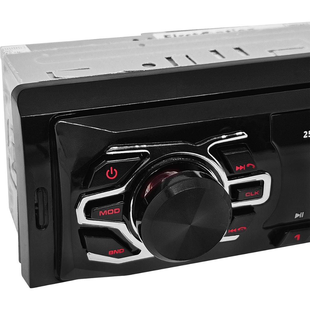 • Marca: First Option • Modelo: 6688 • Tamanho de montagem: 1 Din • Cor: Preto • Potência por canal (RMS): 4x25W • Alimentação: 12V • Controle Remoto: Sim • Conexão Bluetooth • Frente: Fixa • Relógio: Sim • Iluminação dos Botões: Vermelho • Reprodução áudio: MP3 e WMA • Leitura de Arquivos por Pasta: Não • Loud: Sim • Modos Reprodução: Aleatório, Repetir • Opções de Equalização: Pop, Rock e Clássico • Memória para Estação: 18 FM • Frequência FM (MHz): 87,5 - 108 • Busca automática de Estações: Sim • Leitor de CD: Não • Entrada USB para transferir dados: sim • Entrada SD: Sim, frontal • Entrada Auxiliar: Sim, frontal • Bluetooth para Ligações: Sim • Bluetooth para Músicas: Sim • Microfone: Sim (embutido) • Saída Áudio (RCA): 2 • Saída Sub (RCA): Não Itens inclusos • 1 Som Automotivo 6688 • 1 Chicote de alimentação • 1 Manual (em português brasileiro) • 1 Controle Remoto Observação Não é aceita a devolução em caso de instalação incorreta por parte do cliente, por consequência, recomendamos que a instalação seja feita por um profissional competente na área para evitar transtornos, é vital que o produto seja instalado no painel do veículo desejado utilizando exclusivamente o chicote da embalagem. Dito isso, sinta-se livre para resolver suas dúvidas no nosso chat.