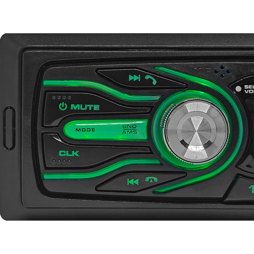 • Marca: First Option • Modelo: 5566SE • Tamanho de montagem: 1 Din • Cor: Preto • Potência por canal (RMS): 4x25W • Alimentação: 12V • Controle Remoto: Sim • Conexão Bluetooth • Frente: Fixa • Relógio: Sim • Iluminação dos Botões: Estático com 7 opções de cores • Reprodução áudio: MP3 e WMA • Leitura de Arquivos por Pasta: Não • Loud: Sim • Modos Reprodução: Aleatório, Repetir • Opções de Equalização: Pop, Rock e Clássico • Memória para Estação: 18 FM • Frequência FM (MHz): 87,5 - 108 • Busca automática de Estações: Sim • Leitor de CD: Não • Entrada USB para transferir dados: sim • Entrada USB para carregar o celular: sim • Entrada SD: Sim, frontal • Entrada Auxiliar: Sim, frontal • Bluetooth para Ligações: Sim • Bluetooth para Músicas: Sim • Microfone: Sim (embutido) • Saída Áudio (RCA): 2 • Saída Sub (RCA): Não Itens inclusos • 1 Som Automotivo 5566SE • 1 Chicote de alimentação • 1 Manual (em português brasileiro) • 1 Controle Remoto Observação Não é aceita a devolução em caso de instalação incorreta por parte do cliente, por consequência, recomendamos que a instalação seja feita por um profissional competente na área para evitar transtornos, é vital que o produto seja instalado no painel do veículo desejado utilizando exclusivamente o chicote da embalagem. Dito isso, sinta-se livre para resolver suas dúvidas no nosso chat.
