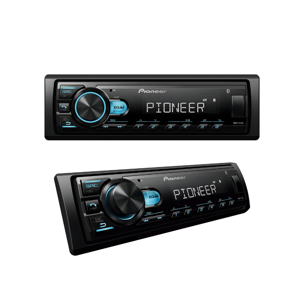 Este anúncio contém: 01 UNIDADE RADIO PIONEER MVH-145BR + 01 UNIDADE CONTROLE REMOTO JFA REDLINE ------------------------------------------------------------------------------------------------------ - MULTIMIDIA 1DIN: Recursos Essenciais para o dia a dia: Bluetooth, USB, Rádio FM, Entrada para Comando de Volante -ÁUDIO Ajuste de Áudio pensado para curtir suas músicas com mais impacto nos graves e clareza nas músicas - DIFERENCIAIS: Construção Robusta com Dissipador de Calor, Botões Silenciosos e Amplificador Superior - DISPLAY Display: 08-Caracteres LCD Iluminação dos Botões: Ciano Ajuste de Dimmer: Sim - BLUETOOTH Conexão Bluetooth: Versão 5.4 Perfil Bluetooth: HFP / A2DP / AVRCP / PBAP Streaming de Músicas: Sim Chamadas Telefônicas Hands-free: Sim - ÁUDIO Potência Nominal: 4 X 23W RMS Saída Pré-Amplificada: 2 (1V) Equalizador: 2-Bandas Loudness: Sim - MÍDIA SUPORTADA (via USB) Sistema de Arquivo: FAT Formato de Áudio: MP3 / WMA / WAV / FLAC - CONEXÕES Porta USB: Frontal (Máx: 0.5A) Entrada para Comando de Volante: 1 Microfone Integrado: 1 - SINTONIZADOR FM BSM (Busca e Sintonia Automática de Estações): Sim Memória para Estações Favoritas: 18 FM RDS: Sim Rádio FM: 76 MHz ~ 108 MHz (Faixa Estendida) - GERAL Garantia: 1 ano Idioma: Português, Inglês e Espanhol Relógio: Sim - DIMENSÕES Fonte de Alimentação Nominal: 14,4V DC Corrente Máxima: 10A Chassi: 178 x 50 x 78.5 mm Frente: 170 x 46 x 17 mm - CONTEÚDO DA EMBALAGEM Pioneer MVH-145BR Cabo de Alimentação Kit de Instalação Guia de Início Rápido ------------------------------------------------------------------------------------------------------ - CONTROLE: O Controle Redline JFA é o único do mercado que permite controlar o player através das interfaces WR e SWC, eliminando a necessidade de ter um sensor infravermelho. Dessa forma, garante uma perfeita comunicação entre o receptor e o player. Além disso, o controle Redline possui o maior alcance em área aberta do mercado e alta precisão ao acionar as teclas. - CARACTERÍSTICAS: Alcance de 1.200 metros (áreas abertas); Agilidade de uso durante eventos de som automotivo (comandos rápidos devido a interface “wire”); Design anatômico com excelente ergonomia; Teclas de silicone com alta resistência. gravadas em baixo relevo; Central slim com receptor ultrassensível. - INFORMAÇÕES TÉCNICAS: Alimentação transmissor: 12V - Bateria A23 Alimentação receptor: 9 a 16Vdc Frequência de operação: 433,92 MHz Modulação: ASK Modelo da bateria: Alkaline Battery 23A 12V