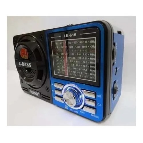 Produto bivolt (110/220V) com chave seletora Abra a tampa traseira da bateria e você verá um cabo forca. Então você verá chave seletora. De acordo com a voltagem do seu local, escolha 110v ou 220v. As teclas de função do rádio e MP3 estão na lado da radio. Especificação: Modelo: LE ? 616 Potência: 3W rms Alto falantes: 1 Rádio: FM / AM / SW1-7 Entradas: Pen drive / Cartão SD / Micro SD / AUX P2 Saída fone de ouvido: não Voltagem: 110/220v (Chave Seletora de Voltagem) Alimentação pilhas: 4 pilhas AA (Não inclusas) Bateria interna recarregável: Sim Autonomia: 4 a 6hrs Marca: LELONG Modelo: LE – 616 Potência: 3W rms Alto falantes: 1 Rádio: FM / AM / SW1-7 Entradas: Pen drive / Cartão SD / Micro SD / AUX P2 Saída fone de ouvido: não Voltagem: 110/220v (Chave Seletora de Voltagem) Alimentação pilhas: 4 pilhas AA Bateria interna recarregável: Sim Autonomia: 4 a 6hrs Medidas: 17,5cm x 8cm x 10,5cm Itens inclusos: 1 Rádio Retrô Lelong 1 Cabo de força 1 Manual em português