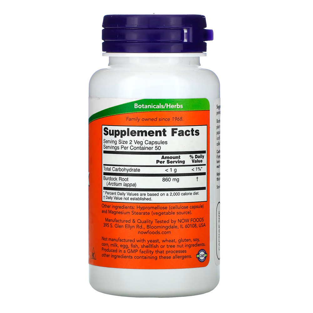 Raiz de Bardana 430mg Now Foods 100 Cáps Importado