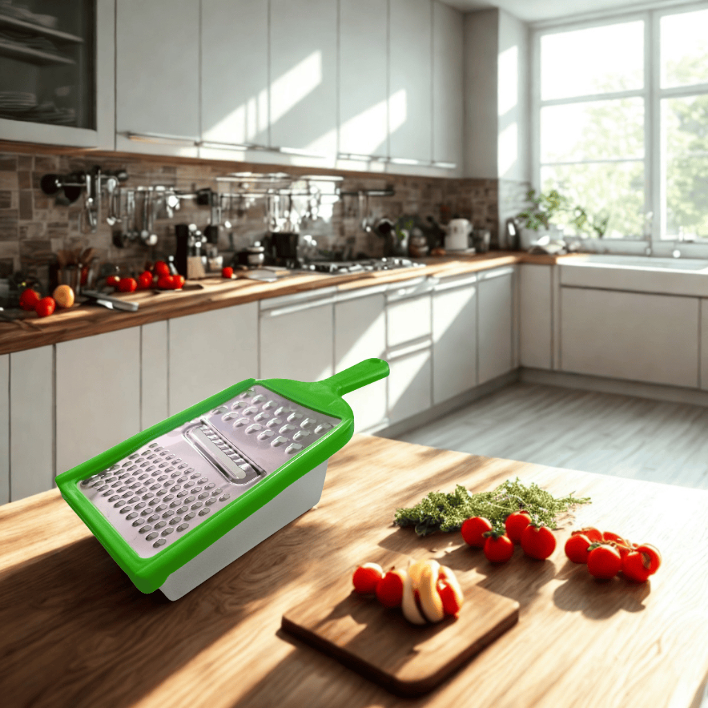 Ralador 3 em 1 com Pote – Fatiador, Ralador Fino e Grosso para Cozinha