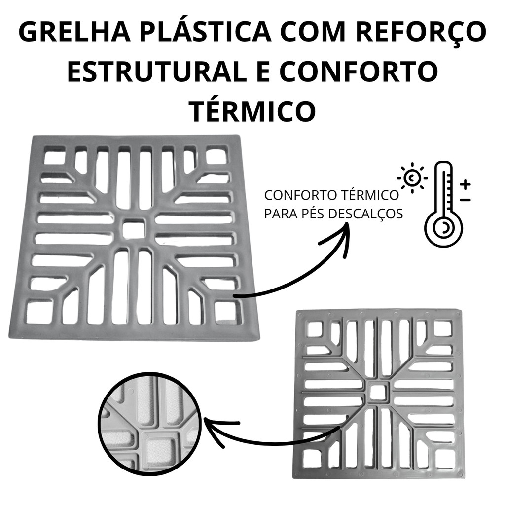 Ralo Anti Odor Cinza 20x20 Plástico Reforçado Conforto Térmico Saida 100mm