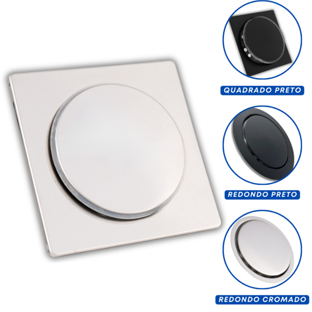 Ralo Click Inteligente 10X10/15X15 Cm - Redondo/Quadrado Inox Banheiro Veda Cheiro Banheiro