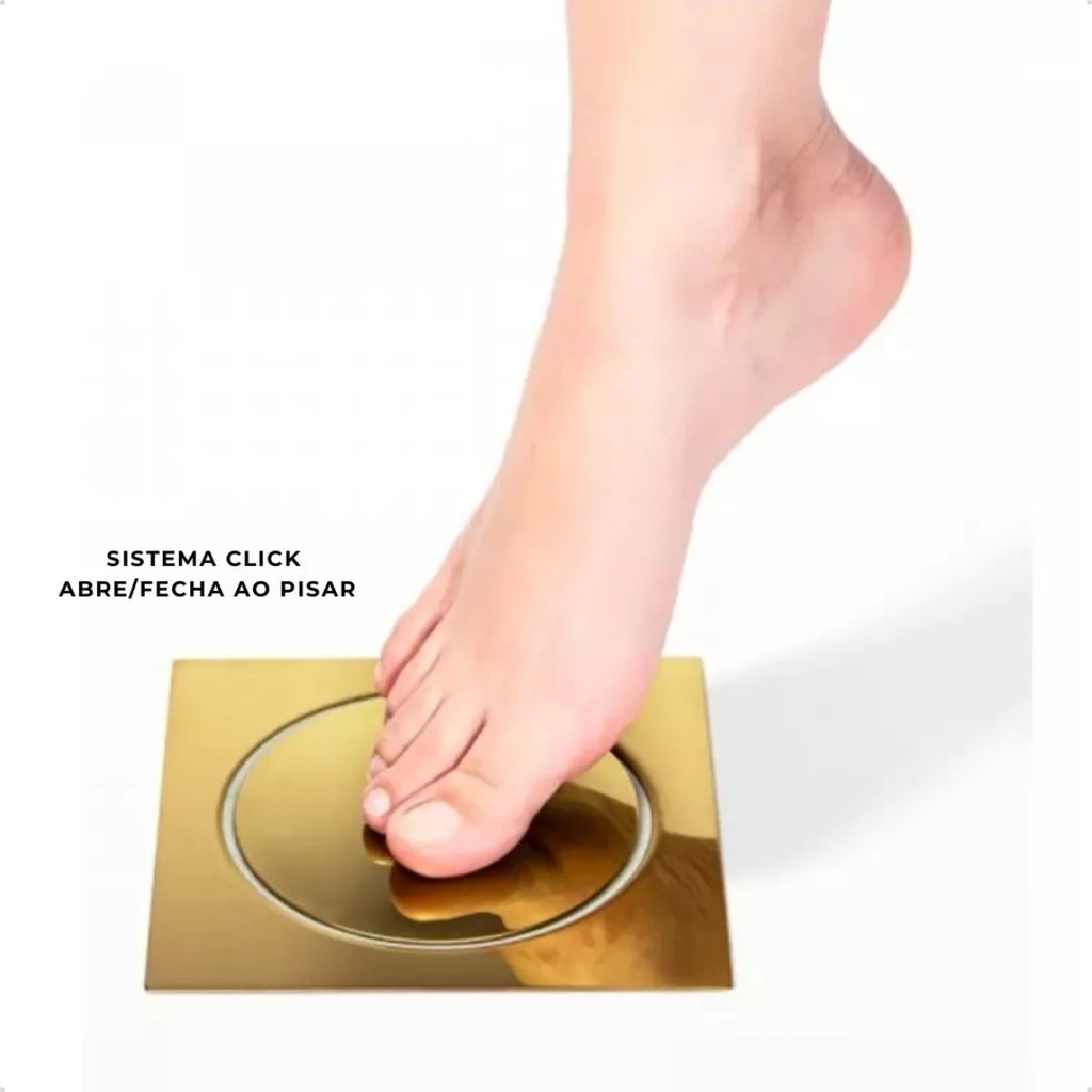 Ralo Click Pop Up Inteligente Anti Odor Inox Dourado 15x15Cm C/ Porta Grelha Class Acabamentos