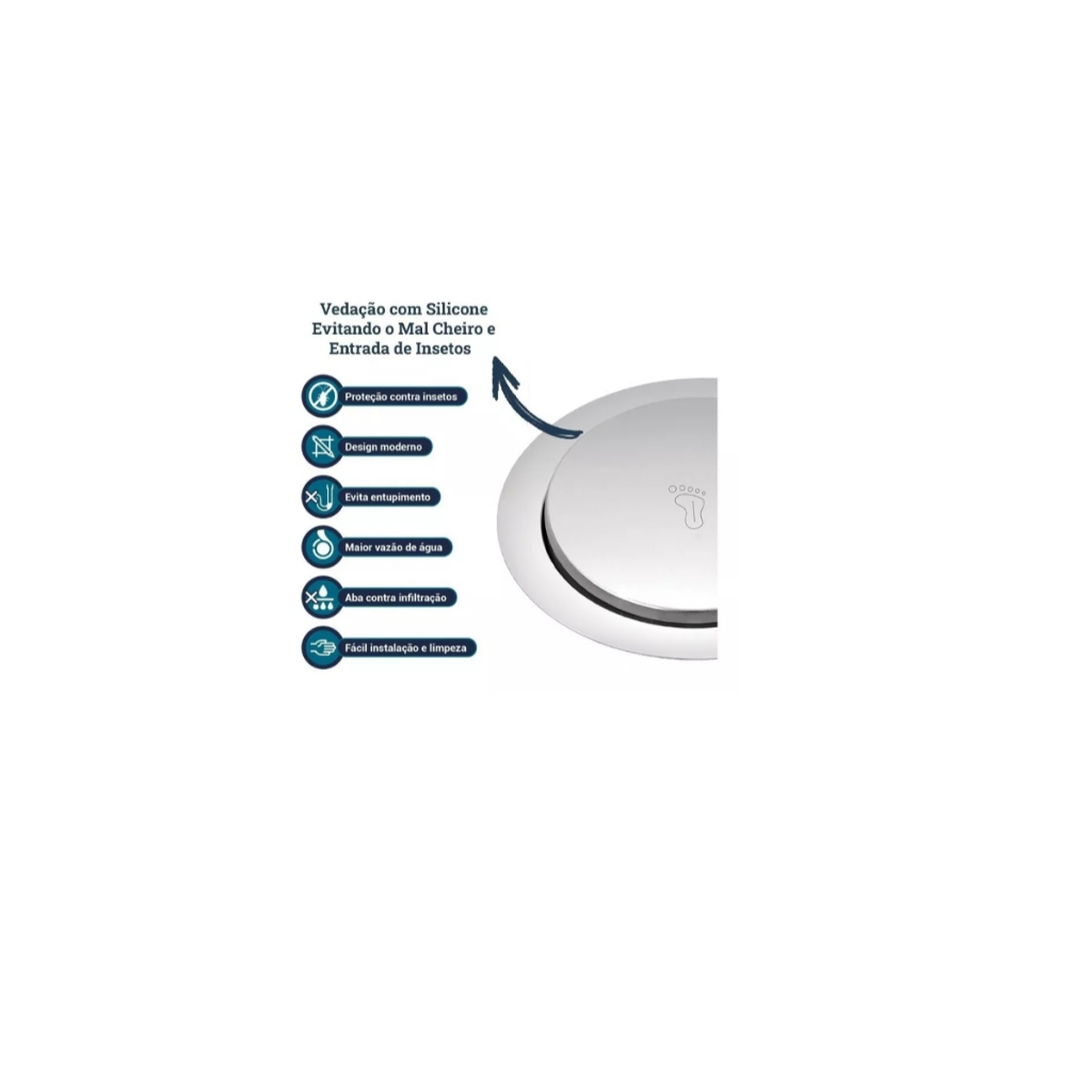 Bem-vindo à DI CASA! Na DI CASA METAIS, sabemos que comprar online pode trazer incertezas. Por isso, nossa missão é oferecer não apenas produtos de qualidade, mas também a confiança que você merece. Garantimos que cada item atenda às suas expectativas e comprometemo-nos a entregar seus produtos no prazo, tudo com preços de fábrica. Além disso, cuidamos da embalagem com atenção especial, assegurando que seus itens cheguem sem danos. Caso você não fique totalmente satisfeito, a política de devolução é simples e eficaz. Estamos sempre disponíveis para ajudar e garantir que sua experiência de compra seja a melhor possível. Explore nossa coleção e descubra como podemos transformar seu espaço com estilo e qualidade a preços que você pode pagar. Obrigado por escolher a DI CASA METAIS! Fabricado em aço inoxidável, material durável, resistente e que não enferruja. Possui um sistema prático abre e fecha, bastando pressioná-lo com o pé. Impede a passagem de insetos e o odor desagradável que pode retornar pelo encanamento ao ambiente. Super versátil e com design moderno pode ser usado em banheiros e lavabos assim como em grandes áreas como cozinhas e lavanderias. Para instalar não é necessário quebrar o piso, basta encaixá-lo sobre o porta grelha do seu antigo ralo. INFORMAÇÕES TÉCNICAS Produto: Ralo Click Inteligente para porta grelha com circunferência de 10cm Material: Metal e aço inoxidável Cor/Acabamento: Cromado Dimensões: 9,5x9,5cm Acionamento: Click