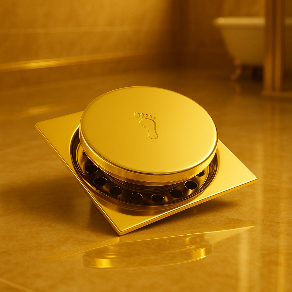 Ralo Dourado Click 10x10 Veda Cheiro Brilhante De Banheiro Luxuoso Aço Resistente Inteligente