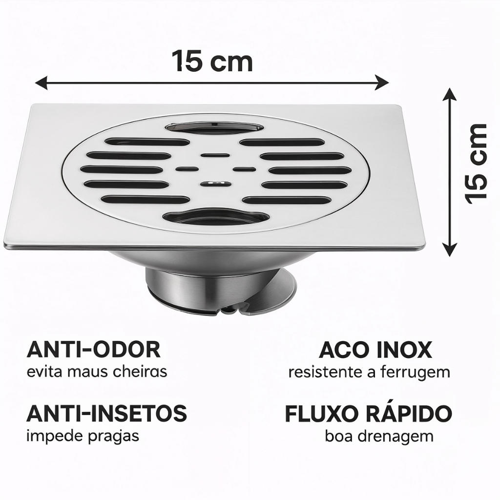 Ralo Inox Quadrado Anti Odores Inseto 15x15 Inteligente