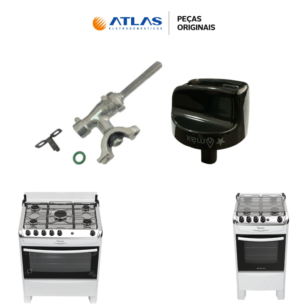 RAMAL REGISTRO REPOSIÇÃO + BOTÃO MANÍPULO ORIGINAL FOGÃO ATLAS FASTCOOK 4 E 5 BOCAS ENVIO IMEDIATO