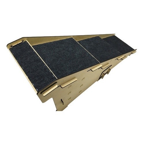 Rampa Escada Pet Cachorro Gato MDF 65cm Carpete Antiderrapante As rampas são indicadas para diminuir as lesões causadas pelo impacto de saltos sobre as articulações do seu cachorro ou gato. Podem evitar doenças como artrite, artrose e rupturas de ligamento. Também são excelentes para evitar o esforço do seu pet no pós cirúrgico. CARACTERÍSTICAS DO PRODUTO: * Dimensões: Altura do último degrau 65 cm, Comprimento 130 cm e Largura 40 cm. * Antiderrapante. Possui carpete resinado preto ou cinza (não desfia com facilidade). * Produzida com MDF Cru/Natural (pode ser pintado). * Resistente devido a seu projeto estrutural (Para PET até 15kg); * Produto vai desmontado. Acompanha manual de montagem. * Fácil montagem. Não utiliza parafusos. * Por se tratar de produto natural, a tonalidade do MDF pode mudar sofrer variações. * Excelente qualidade. Acabamento perfeito. Ref. LPRE650NA
