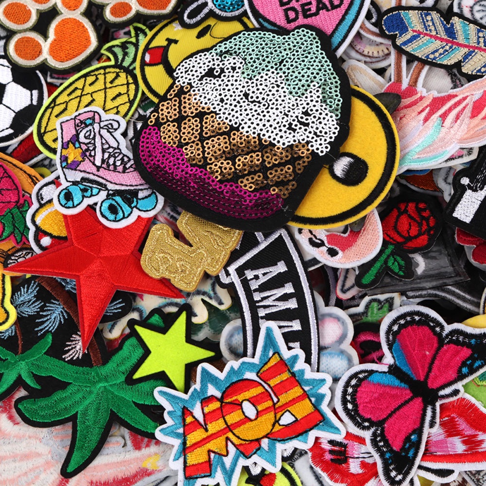 Random 100pcs/bag Mix Iron On Patches E De Costura Tecido Bordados Para Vestuário Adesivos De Bricolagem Appliques