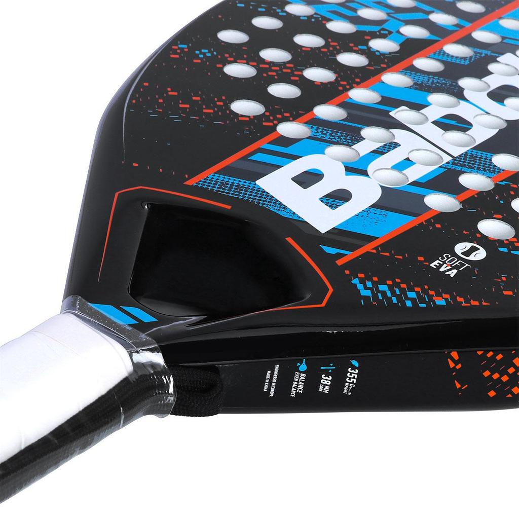 Descrição da Raquete de Padel Babolat Reflex Preta e Azul A Babolat está sempre preocupada em inovar e desenvolver produtos de altíssima qualidade e é presente em mais de 100 países. Com a credibilidade de uma importante marca direcionada aos artigos de Tênis do mundo, apresenta a Raquete de Padel Babolat Reflex Preta e Azul, leve e resistente, ideal para jogadores intermediários que procuram alto desempenho. Conheça as Características da Raquete de Padel Babolat Reflex Preta e Azul - Perfil: Intermediários ; - Tecnologia: Light Weight, visa reduzir o peso sem comprometer a potência, a estabilidade e o conforto. HybRid Frame, visa melhorar a resposta e a precisão que aumenta a velocidade do swing e a estabilidade da raquete. Soft Eva, é uma tecnologia que visa aumentar o conforto e a suavidade das raquetes de padel, graças a um núcleo de espuma EVA de baixa densidade.; - Composição: Armação: Carbono e fibra de vidro. Superfície: Fibra de vidro. Núcleo: EVA; - Comprimento: 45cm; - Peso aproximado: 355g (+ ou - 10g); - Detalhamento: Superfície lisa, forma da cabeça diamante, possui 68 furos, acompanha cordão de pulso; - Espessura: 38mm; - Garantia do Fabricante: Contra defeito de fabricação; - Origem: Importado.