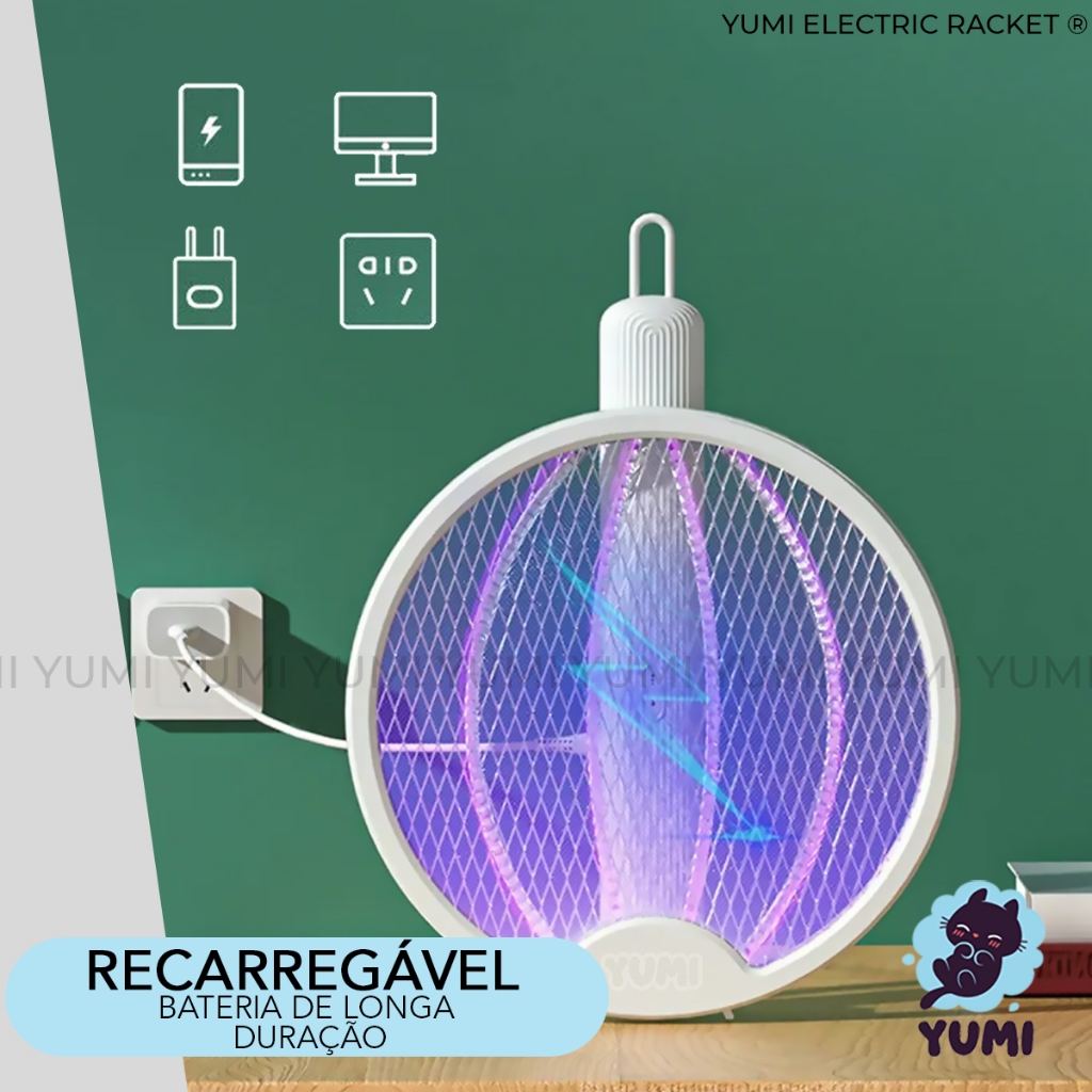 Raquete Eletrica Mata Insetos Recarregavel Mosca Pernilongos Bi Volt USB Dobrável