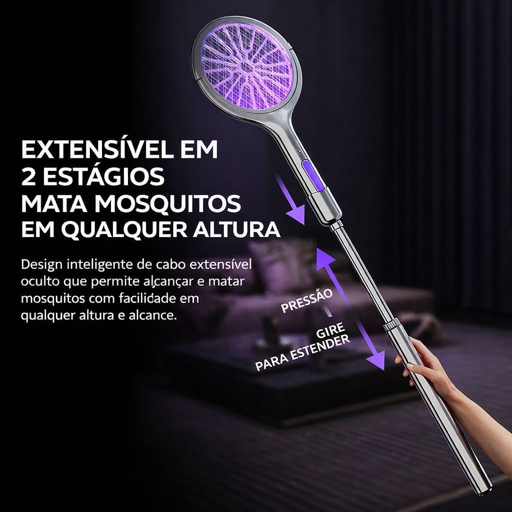 Raquete Elétrica Retrátil Recarregável Com Luz Matar Mosquito Inseto De Alta Potência 2 em 1