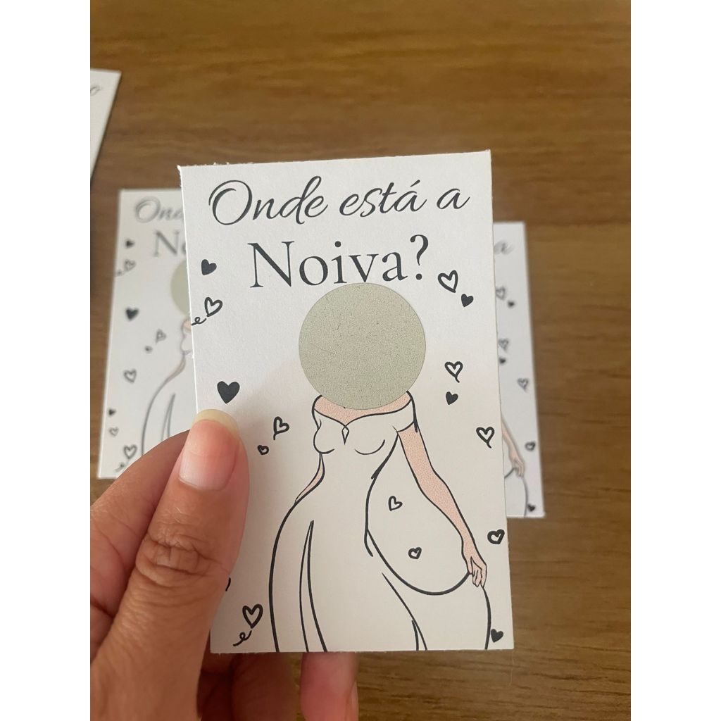 💌 Cards Raspadinha “Ache os Noivos” Após a compra, envie no chat fotos dos noivos para o recorte do rosto. Nos demais cards, utilizamos rostos de casais famosos, personagens de filmes, séries e desenhos. Informe no chat quais cards deseja: Noivo, Noiva ou ambos, e também a quantidade de cada modelo. Brincadeira divertida para chá de panela, chá bar, chá lingerie ou casamento! Cada tag esconde rostos de casais, e algumas delas revelam o casal verdadeiro! Uma forma leve e interativa de envolver os convidados e garantir boas risadas no seu evento! Pode escolher a quantidade de cards com os noivos que desejar! 🛑 Avisos 🛑 Não realizamos personalização do modelo; a produção é feita exatamente conforme apresentado. O pedido deve ser realizado com antecedência, pois não há garantia de entrega no prazo. Após o despacho, o prazo de entrega passa a ser de responsabilidade dos Correios. 📐 Detalhes do produto • MEDIDAS: 6cm x 9,7cm • PAPEL: Offset 180g