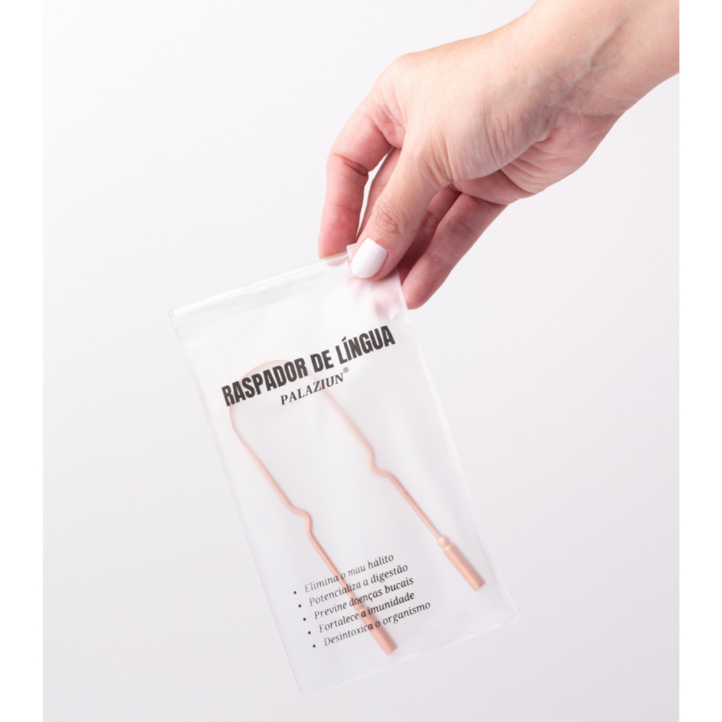 RASPADOR E LIMPADOR DE LINGUA DE COBRE MODELO PALAZIUN - ORIGINAL Aparelho desenvolvido para limpeza e higienização da língua através da raspagem após a escovação, aproveite nossa promoção especial e peça já o seu raspador de língua feito de cobre premium! IMPORTANCIA DA LIMPEZA DA LINGUA: Para manter a saúde bucal em dia não basta apenas escovar os dentes, é preciso cuidar da limpeza da língua, pois nossa língua acaba mantendo restos de alimentos e células mortas junto a bactérias em sua superfície que formam a suburra que é aquela camada branca que se encontra na superfície de uma língua suja. Uma língua não higienizada corretamente pode causar mau hálito, tártaros e caries. COMO USAR O RASPADOR DE LINGUA Seu uso é simples e muito prático, após a escovação dos dentes, pegue o aparelho, coloque a sua língua para fora da boca e comece a raspagem suavemente, sempre raspando da parte de trás da língua até a sua ponta. Repita este movimento até ver que sua língua esta limpa e livre de sujeiras, o raspador irá remover toda a camada de bactérias e suburra (camada branca) da superfície da sua língua, deixando a boca higienizada e com um hálito mais fresco. Recomendamos que após a raspagem utilize um enxaguante bucal e bocheche por ao menos 30 segundos para eliminar qualquer resto de bactéria ou alimento que tenha sobrado, caso não tenha enxaguante bucal poderá fazer o bochecho utilizando agua. BENEFICIOS DA RASPAGEM E LIMPEZA DA LINGUA: *Melhora do hálito (mais limpo e fresco); *Melhora da saúde bucal; *Melhora da Aparência da língua (mais saudável e viva); *Elimina suburra da superfície da língua (camada branca); *Auxilia na prevenção de caries e tártaros; *Proporciona uma ótima sensação de alivio e bem estar; PRAZO DE ENTREGA A entrega do produto é feita pelos Correios ou transportadoras em parceria com a Shopee, o tempo de entrega varia de 3 a 10 dias uteis dependendo do lugar onde o produto será entregue. Ao efetuar a compra o produto será despachado dentro de 24 horas uteis, e logo após o despacho você receberá um código de rastreio que poderá usar para acompanhar todos os processos da entrega do seu produto. QUALIDADE E SEGURANÇA COM SHOPEE A plataforma da Shopee protege o comprador e vendedor, cuidando de todos os processos do seu pedido, então caso não fique satisfeito com o produto que recebeu você poderá fazer a devolução e terá todo o seu dinheiro de volta sem custo algum (de acordo com o código de defesa do consumidor). SOBRE NÓS (LOJA) Nossa loja trabalha com vendas na internet a cerca de 3 anos, porém estamos na Shopee a pouco tempo, temos como objetivo proporcionar a melhor experiência para nossos clientes, oferecendo produtos de qualidade, bom preço, entrega rápida e um ótimo e atencioso atendimento. Qualquer duvida nos mande uma mensagem e lhe responderemos o mais rápido possível.