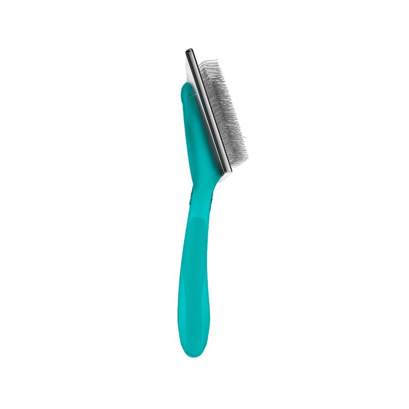 PRODUTO NOVO, ORIGINAL E COM NOTA FISCAL! A Rasqueadeira Reta Grande com Bolinhas possui pinos em aço inoxidável flexíveis e com a ponta protegida, garantindo uma agradável massagem para os animais enquanto alisa os pelos, impedindo de arranhar a pele. Possui design inovador com cantos arredondados, onde além de alisar o pelo do animal, proporciona uma massagem agradável na pele, sem risco de machucar, devido aos seus pinos em aço inoxidável flexíveis e com a ponta protegida. Com cabo emborrachado e alças antiderrapantes, proporciona um manuseio mais confortável e firme, além de ser um acessório indispensável para o seu Banho e Tosa ou Pet Shop, sendo recomendada também para uso doméstico. Características: - Dimensões: 1,5cm x 11,5cm x 18cm - Peso: 97g - Pinos de aço inoxidável flexíveis e com a ponta protegida - Cabo emborrachado com alças antiderrapantes
