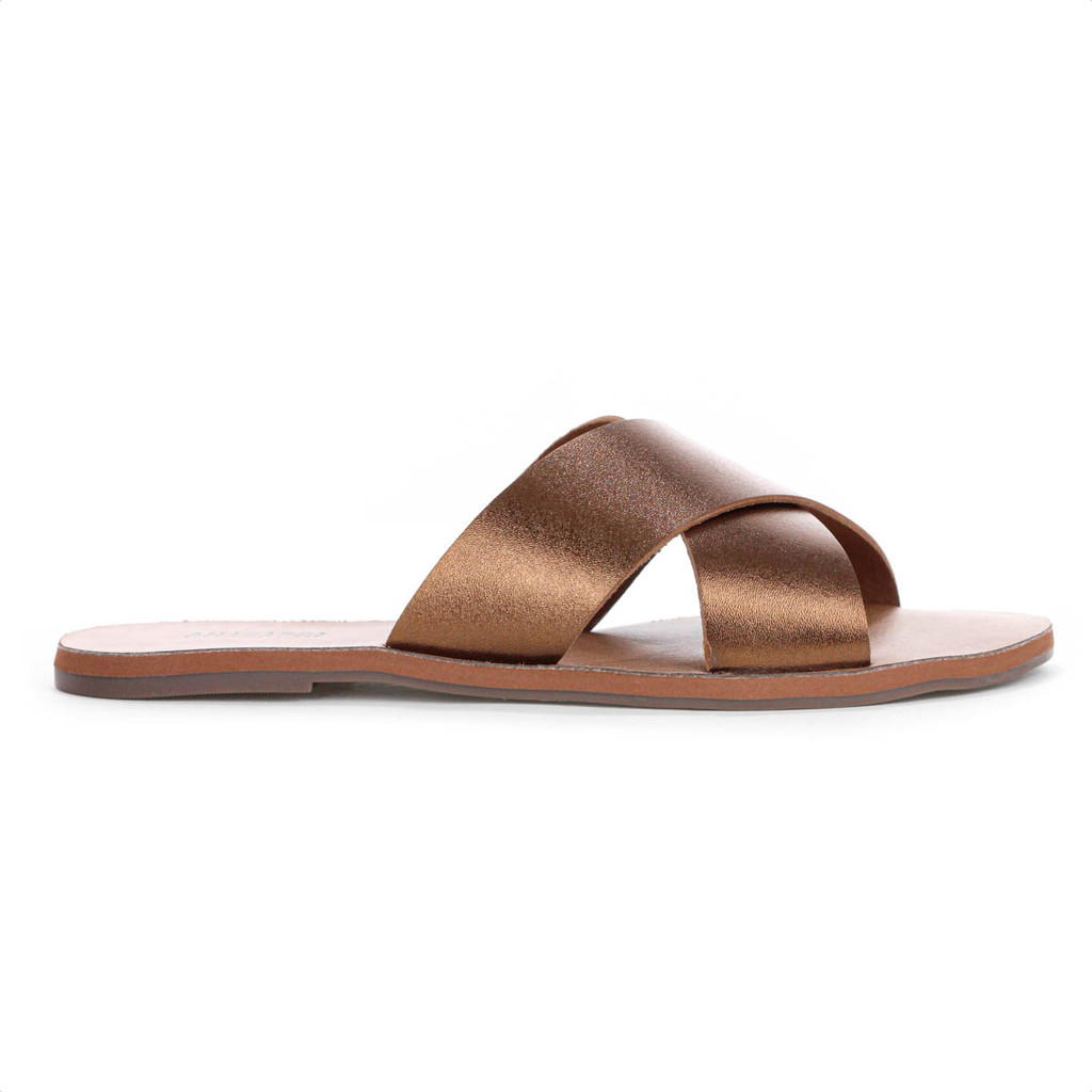 Rasteira Anacapri Couro Tiras Cruzadas Bronze - Feminino