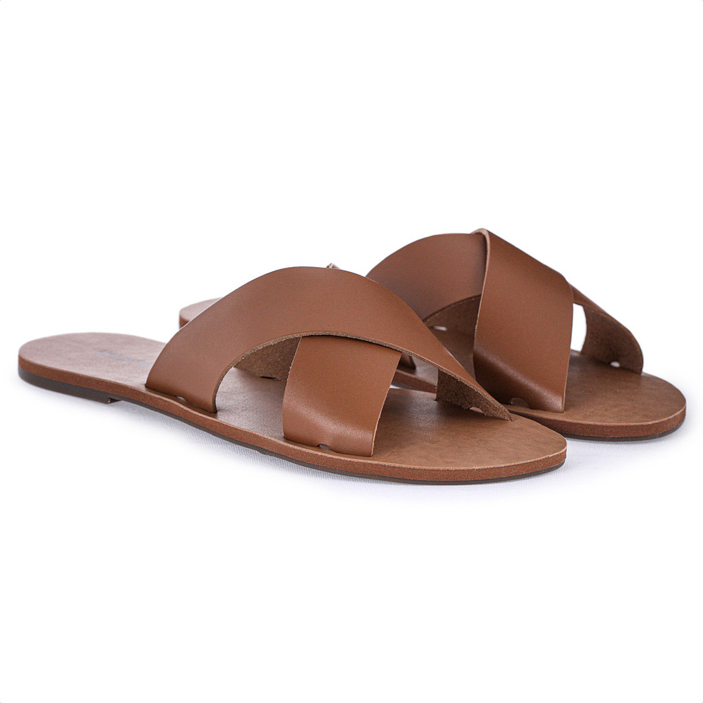 Rasteira Anacapri Couro Tiras Cruzadas Marrom - Feminino