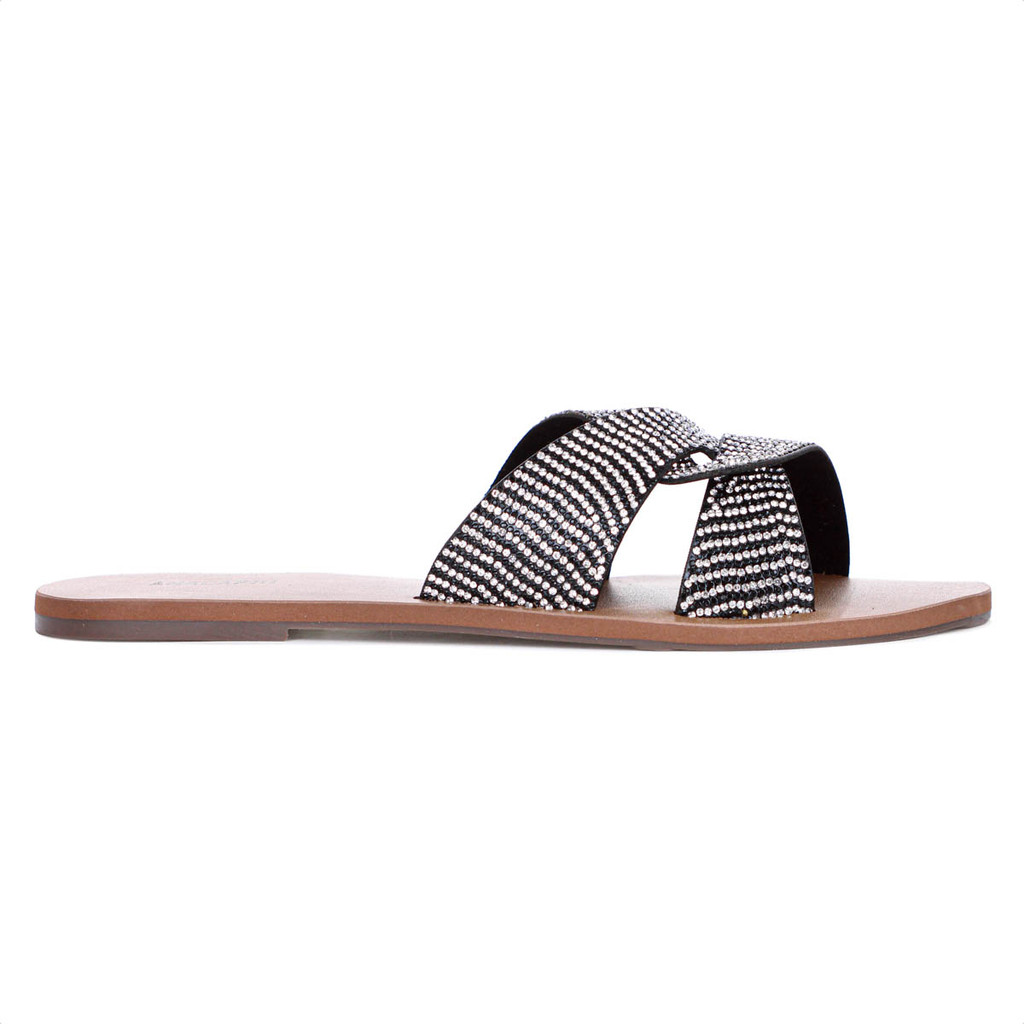 Rasteira Anacapri Tira Entrelaçada Glitter Marrom Preto e Prata - Feminino