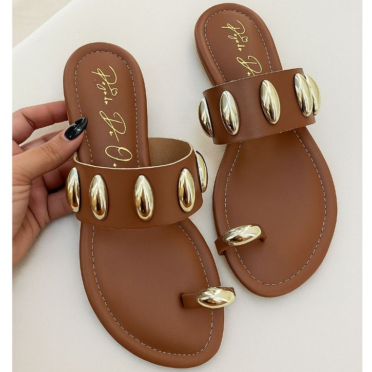 Rasteira Feminina Delicada Confortável Luxo Enfeite Metalizado Abs (Ref 6012)