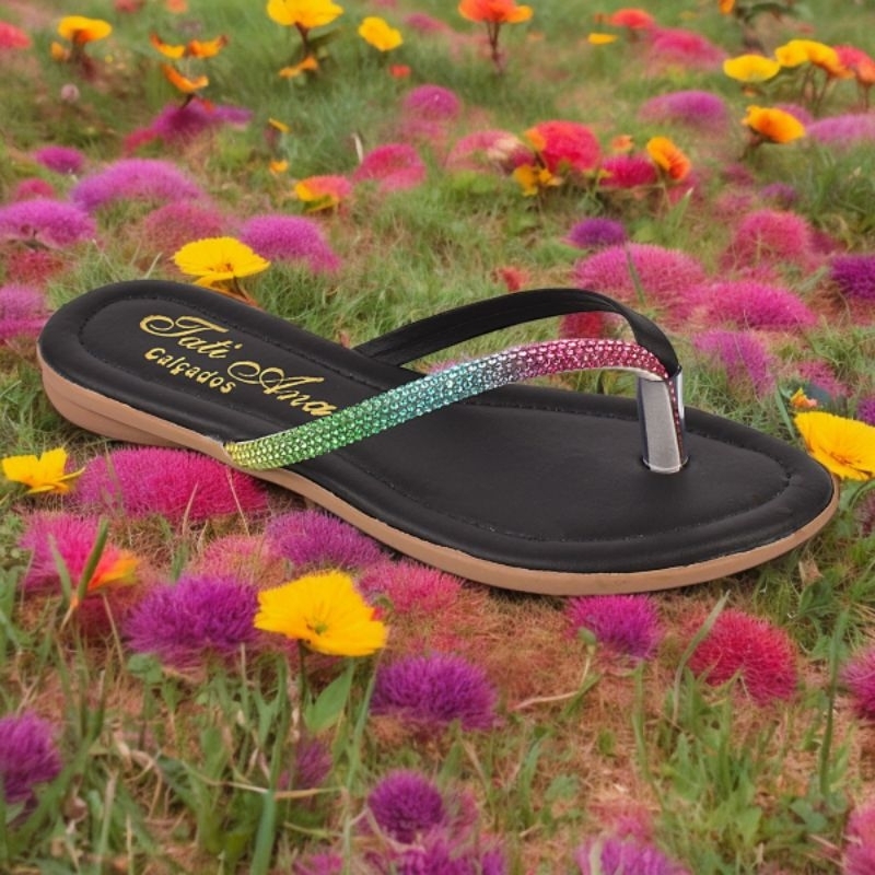 Rasteira Infantil Rasteirinha Colorida Casual Chinelo Strass Brilho Confortável Moda
